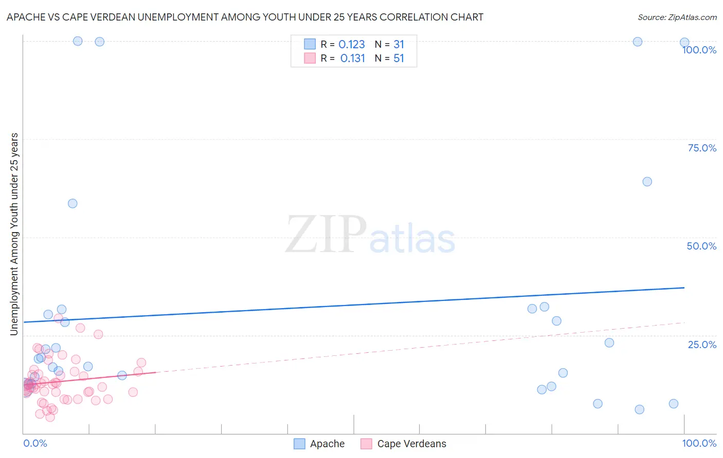 Apache vs Cape Verdean Unemployment Among Youth under 25 years Correlation Chart
