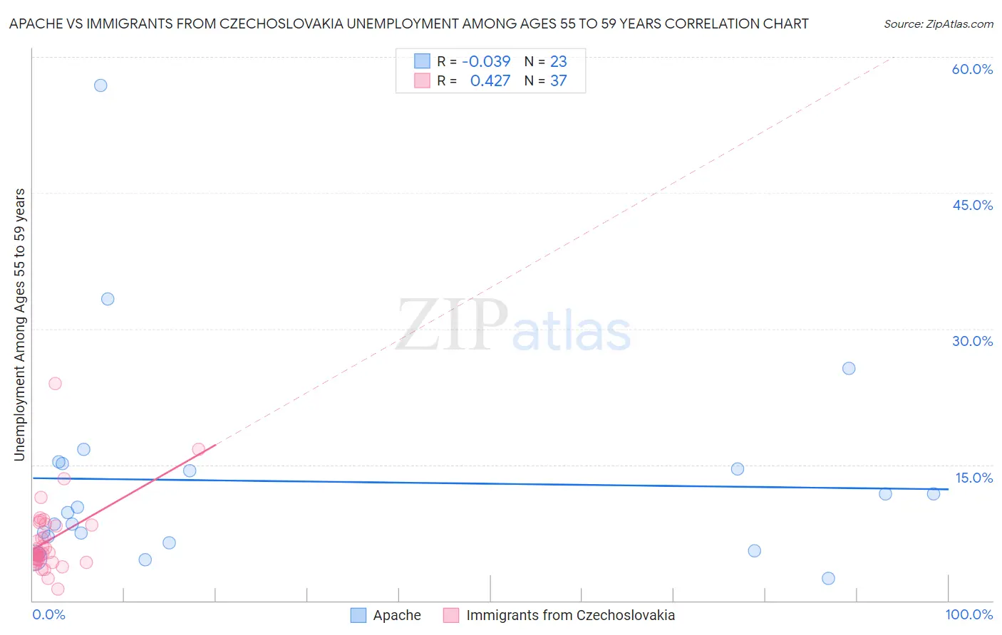 Apache vs Immigrants from Czechoslovakia Unemployment Among Ages 55 to 59 years