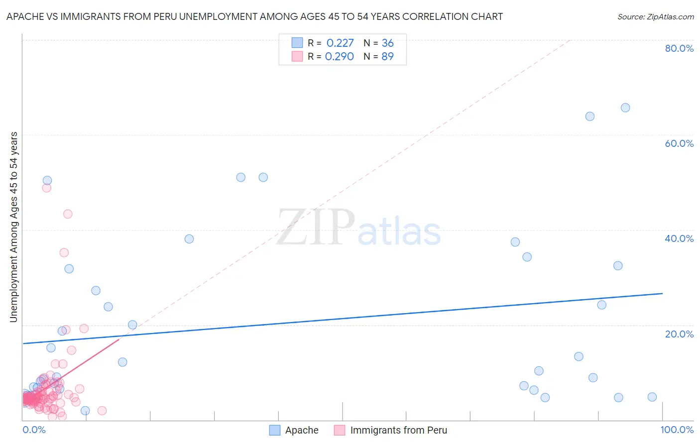 Apache vs Immigrants from Peru Unemployment Among Ages 45 to 54 years Correlation Chart