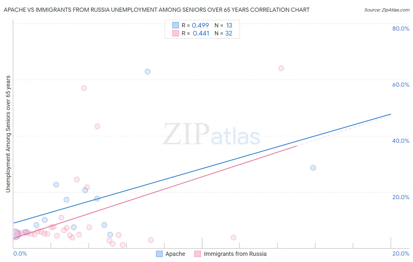 Apache vs Immigrants from Russia Unemployment Among Seniors over 65 years Correlation Chart