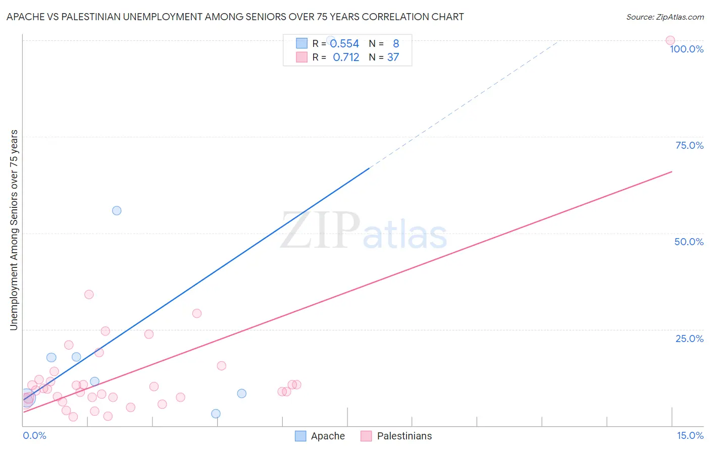 Apache vs Palestinian Unemployment Among Seniors over 75 years Correlation Chart