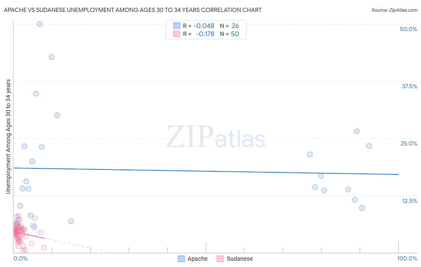 Apache vs Sudanese Unemployment Among Ages 30 to 34 years Correlation Chart