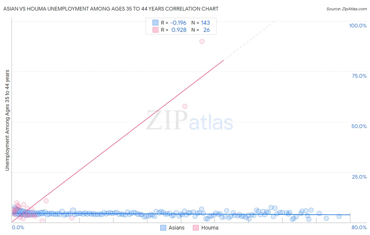 Asian vs Houma Unemployment Among Ages 35 to 44 years Correlation Chart