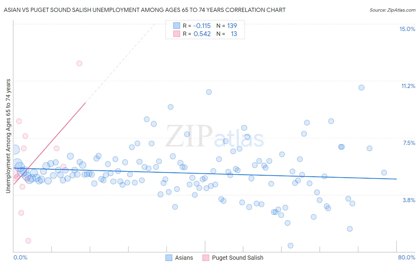 Asian vs Puget Sound Salish Unemployment Among Ages 65 to 74 years
