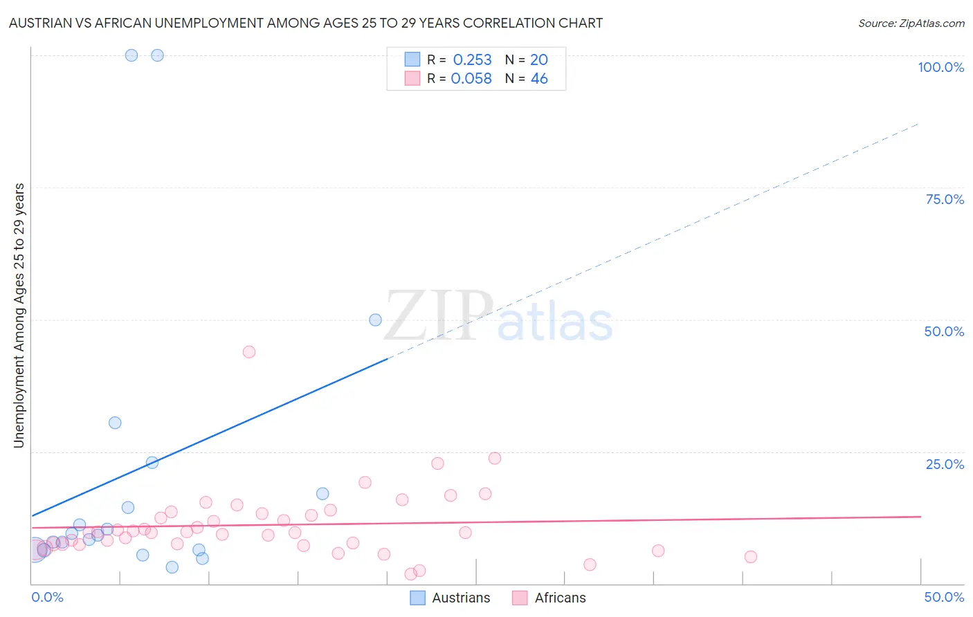 Austrian vs African Unemployment Among Ages 25 to 29 years