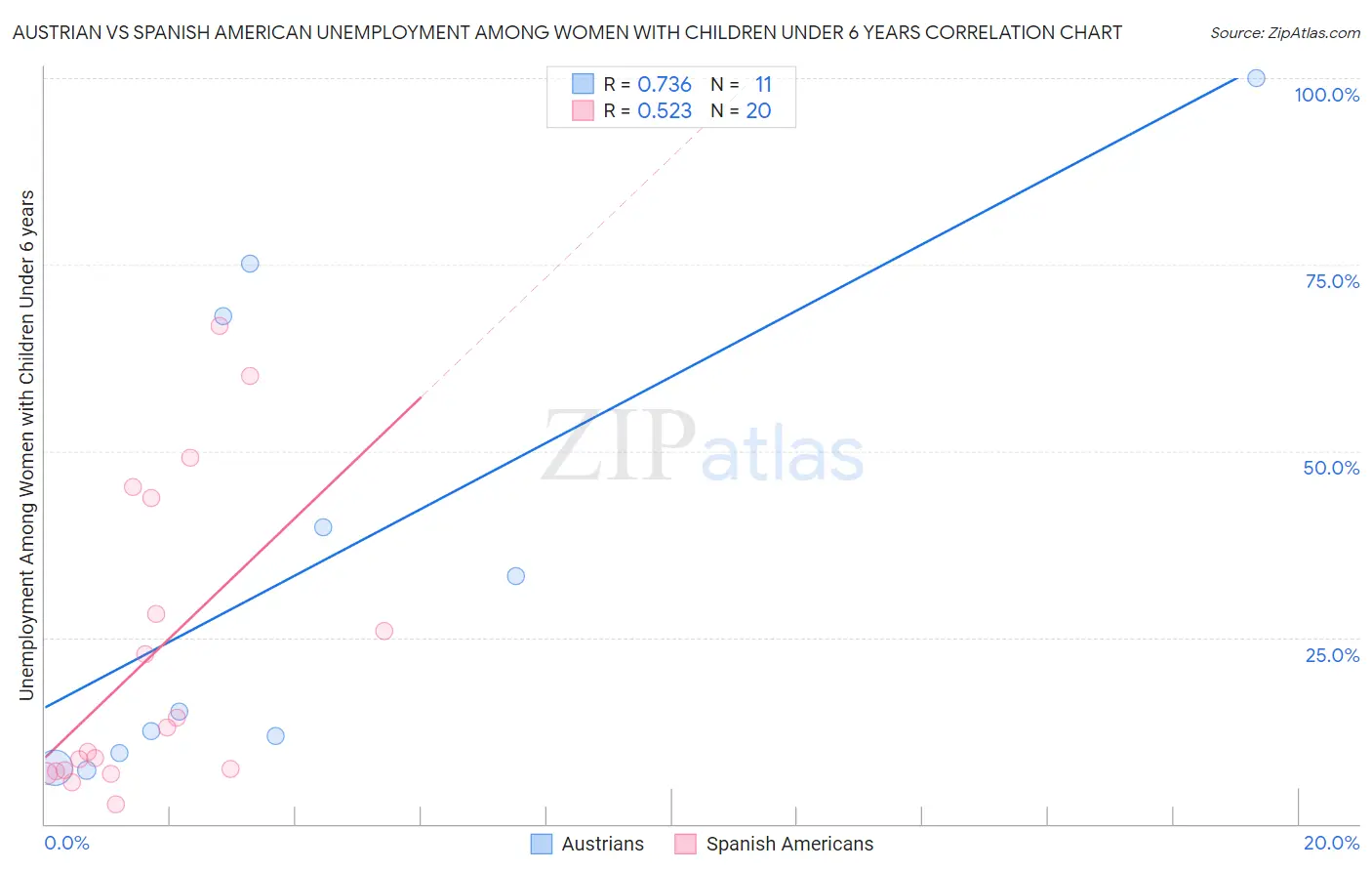 Austrian vs Spanish American Unemployment Among Women with Children Under 6 years Correlation Chart