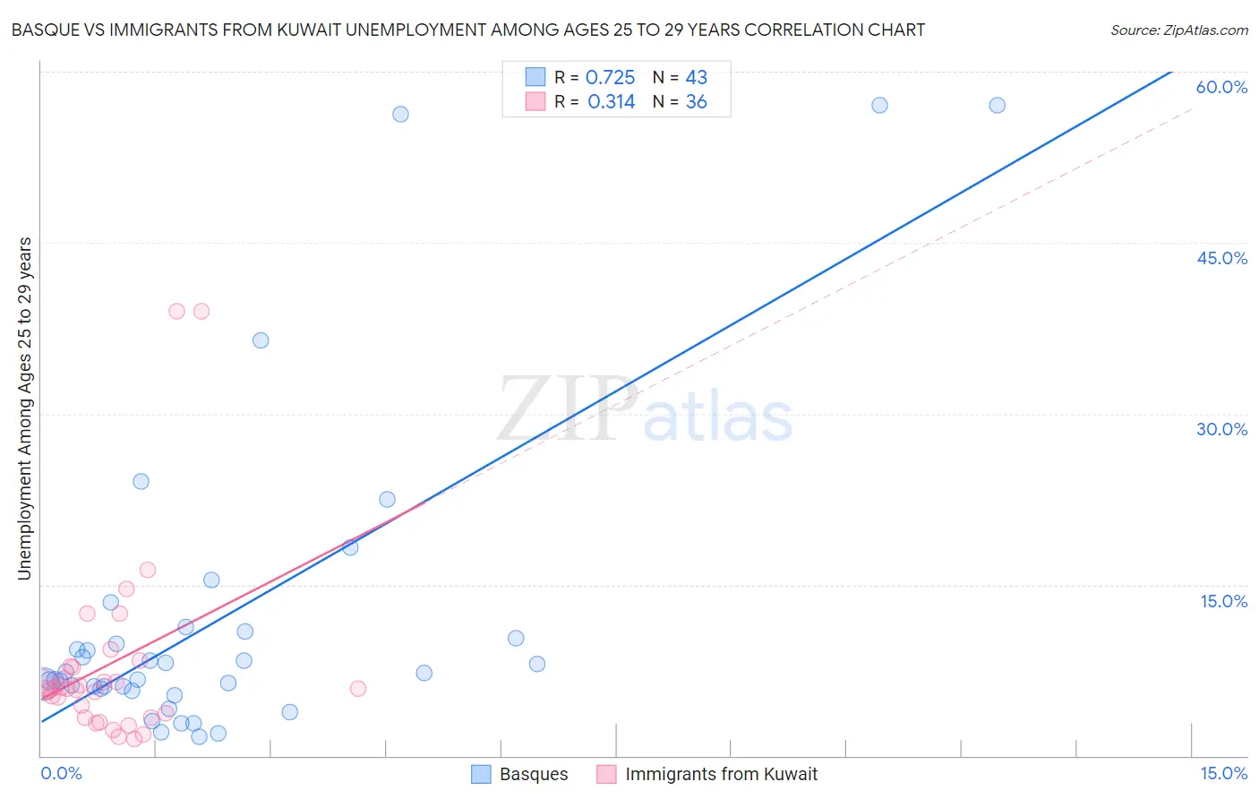 Basque vs Immigrants from Kuwait Unemployment Among Ages 25 to 29 years Correlation Chart