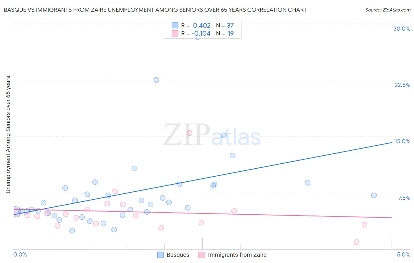 Basque vs Immigrants from Zaire Unemployment Among Seniors over 65 years Correlation Chart