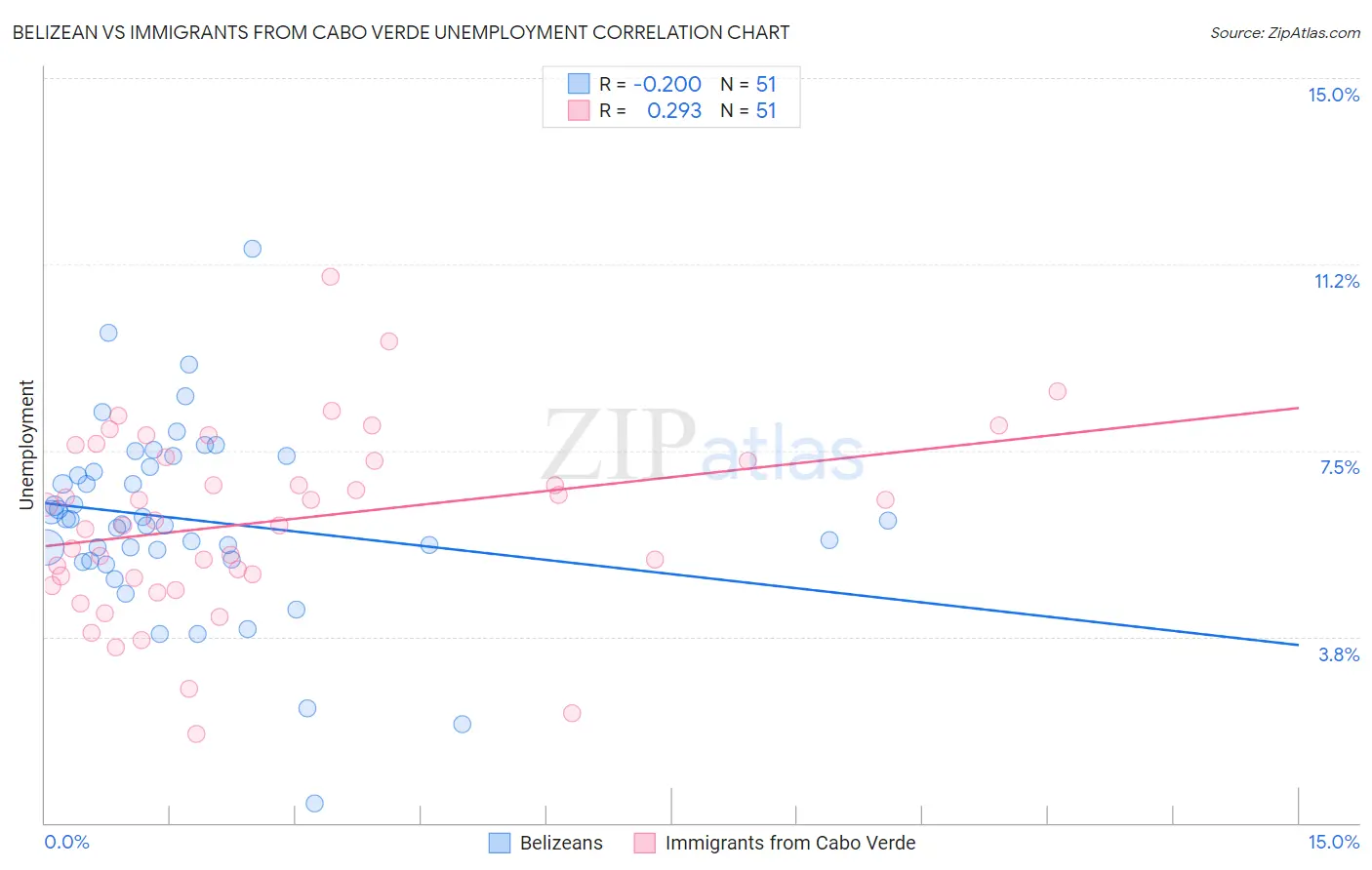 Belizean vs Immigrants from Cabo Verde Unemployment Correlation Chart