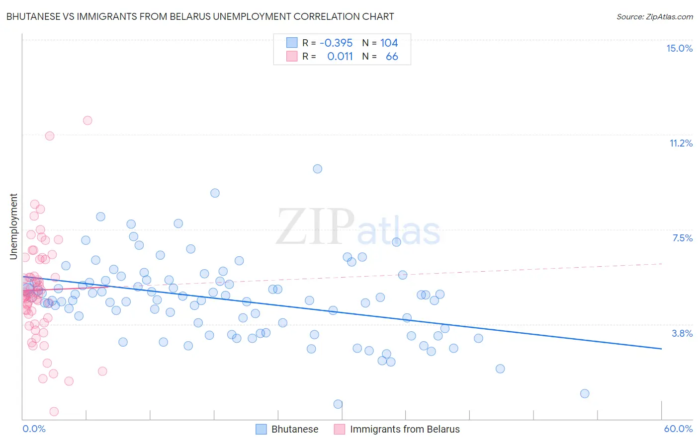 Bhutanese vs Immigrants from Belarus Unemployment Correlation Chart