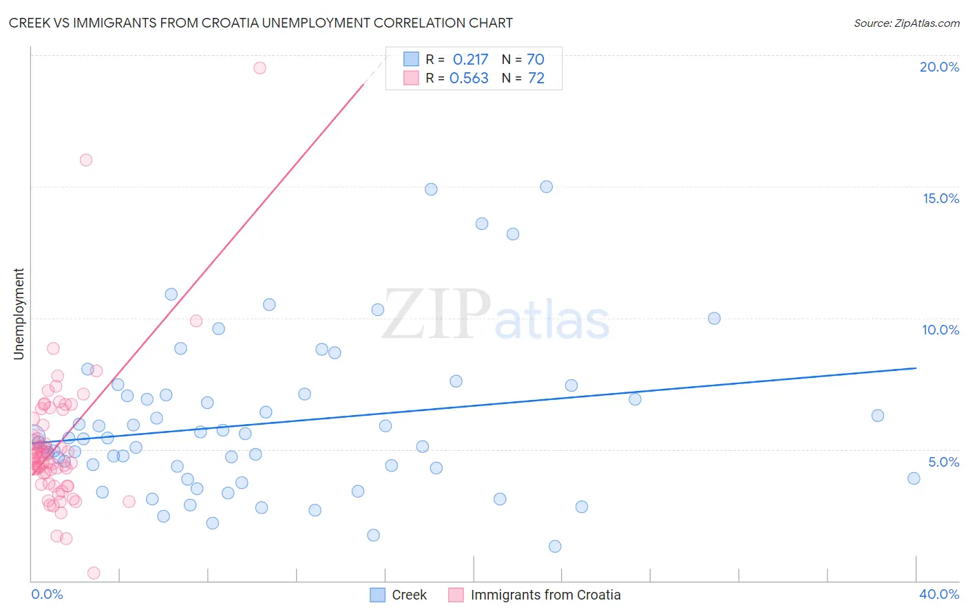 Creek vs Immigrants from Croatia Unemployment Correlation Chart