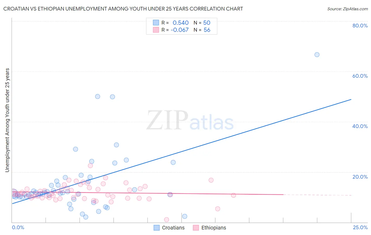 Croatian vs Ethiopian Unemployment Among Youth under 25 years Correlation Chart
