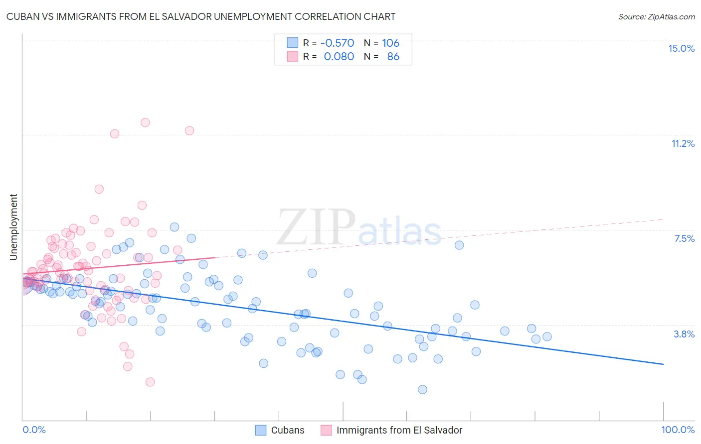 Cuban vs Immigrants from El Salvador Unemployment Correlation Chart