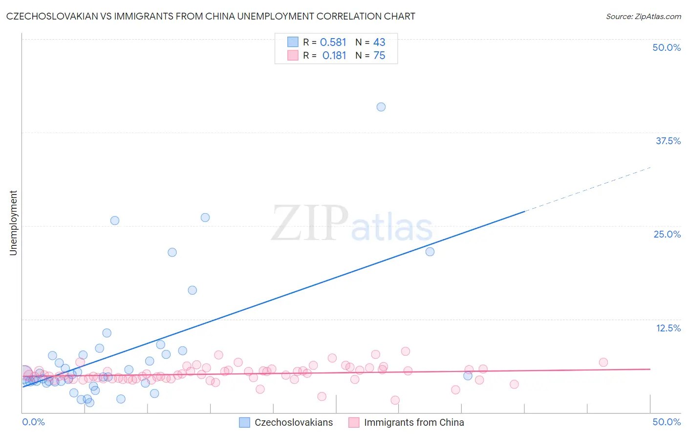 Czechoslovakian vs Immigrants from China Unemployment Correlation Chart