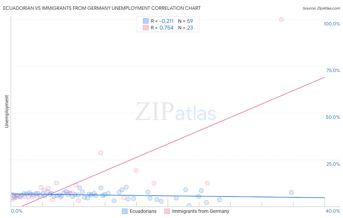 Ecuadorian vs Immigrants from Germany Unemployment Correlation Chart
