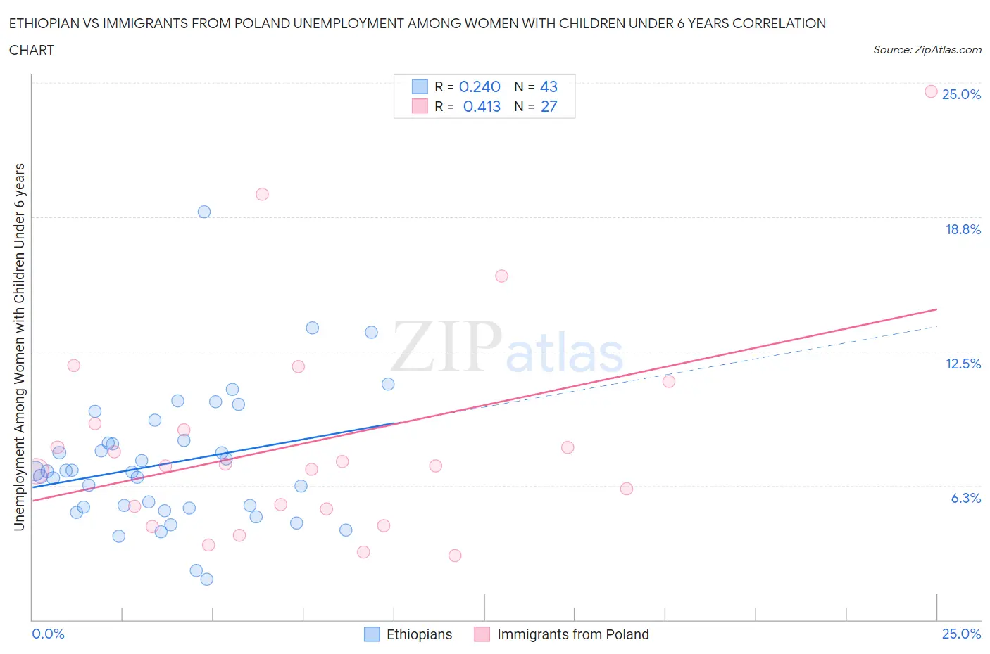 Ethiopian vs Immigrants from Poland Unemployment Among Women with Children Under 6 years Correlation Chart