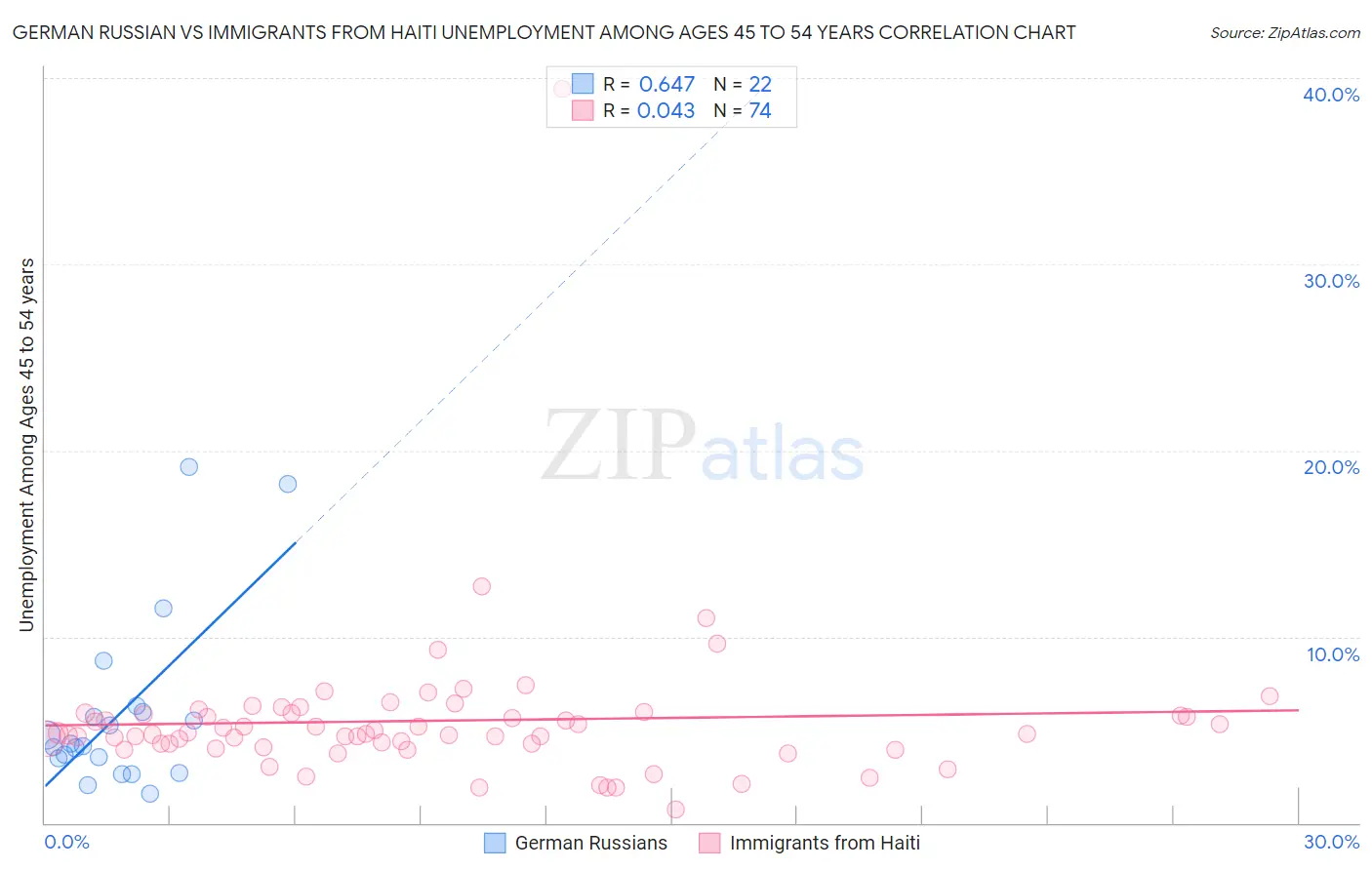 German Russian vs Immigrants from Haiti Unemployment Among Ages 45 to 54 years Correlation Chart