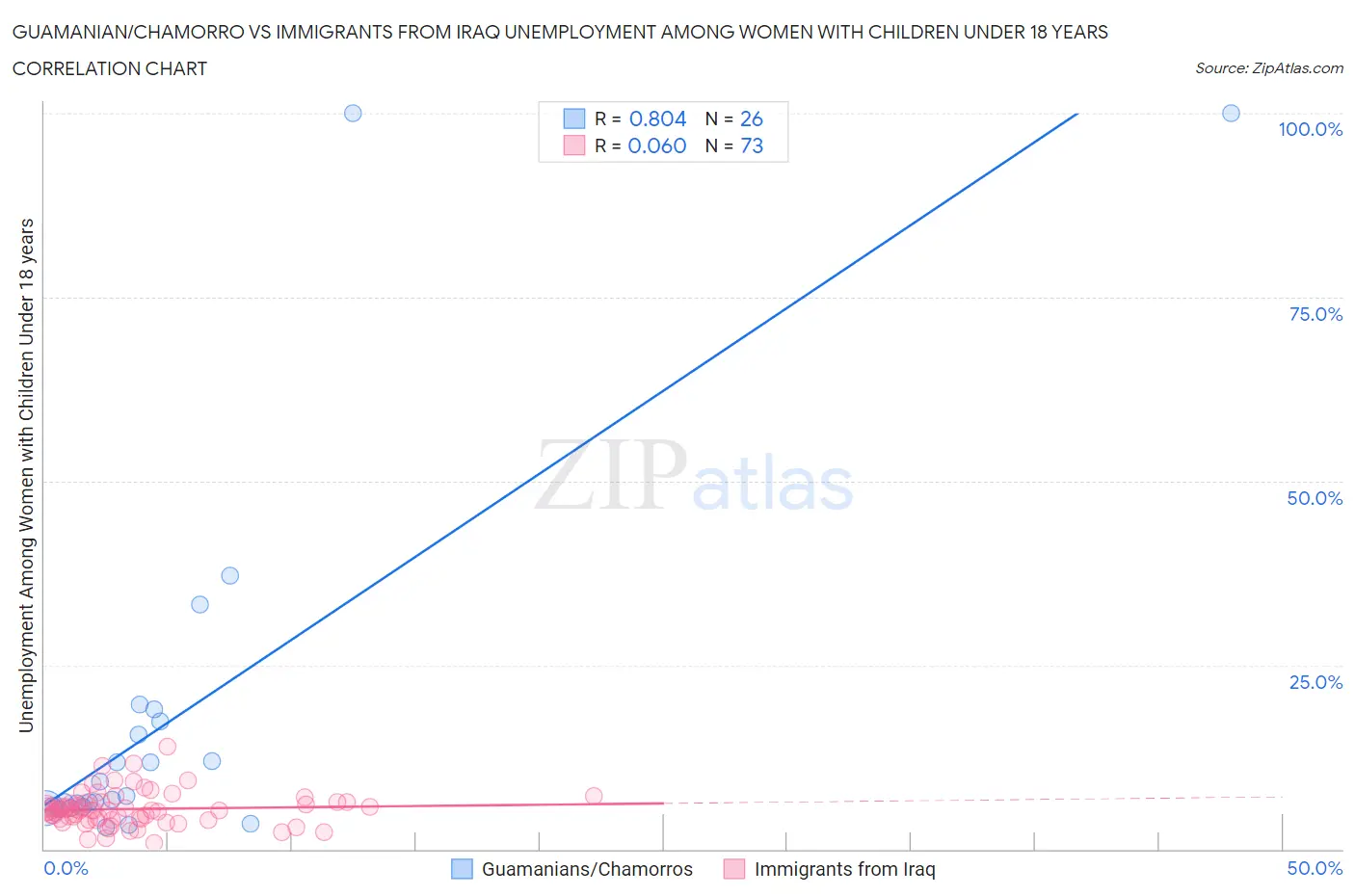 Guamanian/Chamorro vs Immigrants from Iraq Unemployment Among Women with Children Under 18 years Correlation Chart