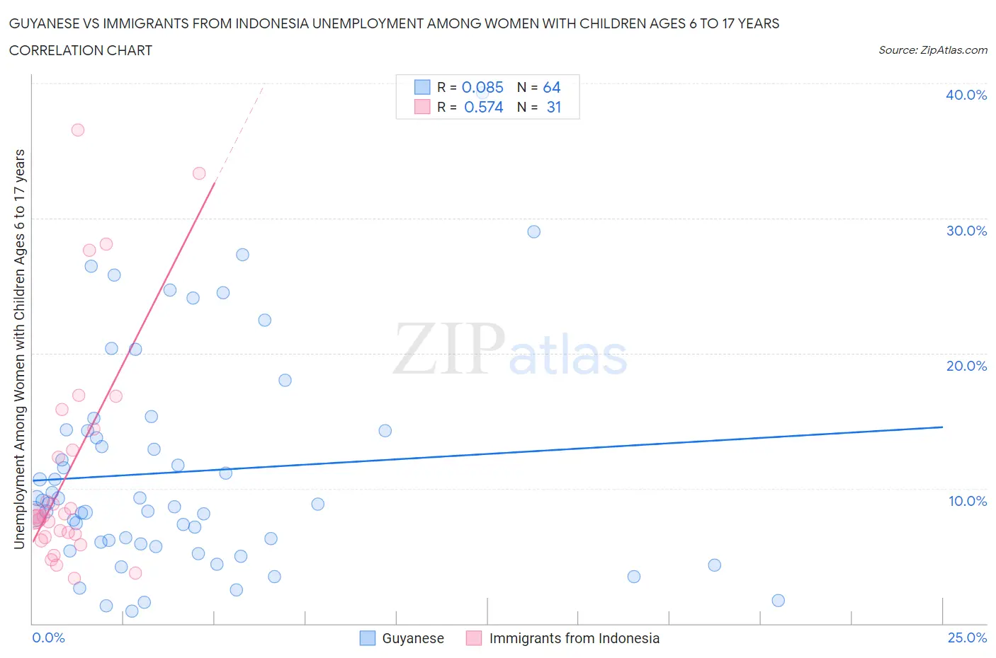 Guyanese vs Immigrants from Indonesia Unemployment Among Women with Children Ages 6 to 17 years Correlation Chart