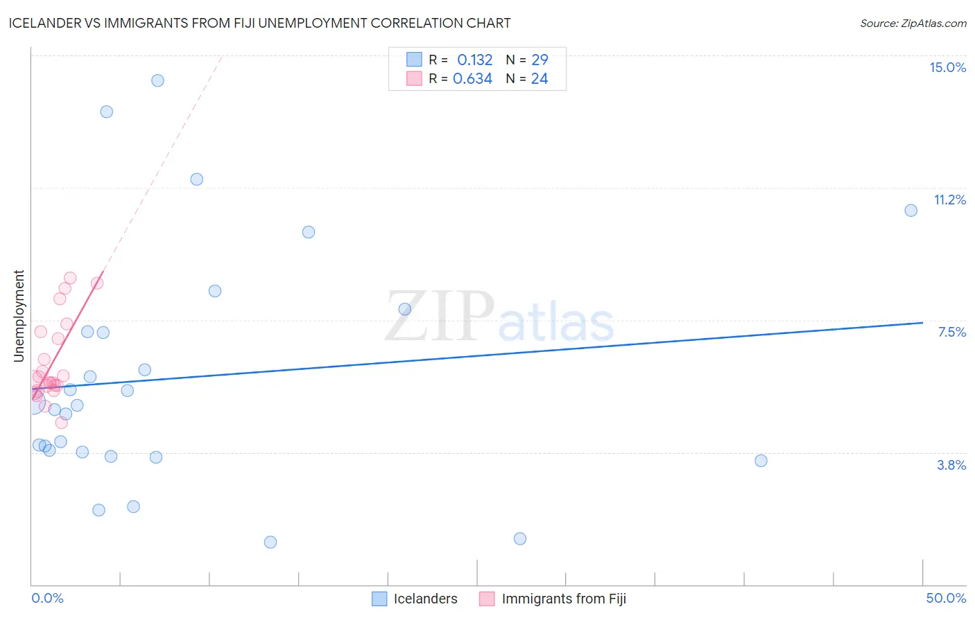 Icelander vs Immigrants from Fiji Unemployment Correlation Chart