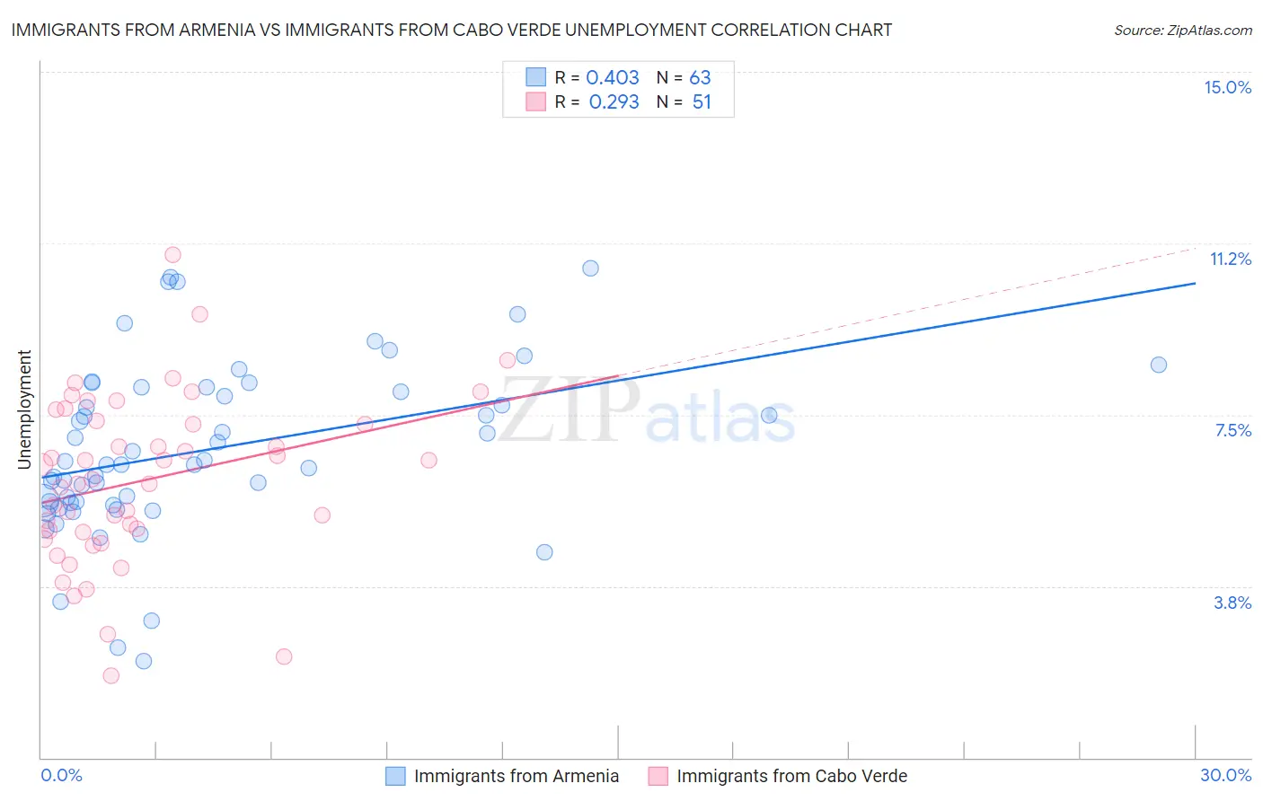 Immigrants from Armenia vs Immigrants from Cabo Verde Unemployment Correlation Chart