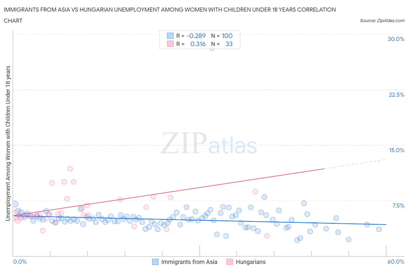 Immigrants from Asia vs Hungarian Unemployment Among Women with Children Under 18 years Correlation Chart