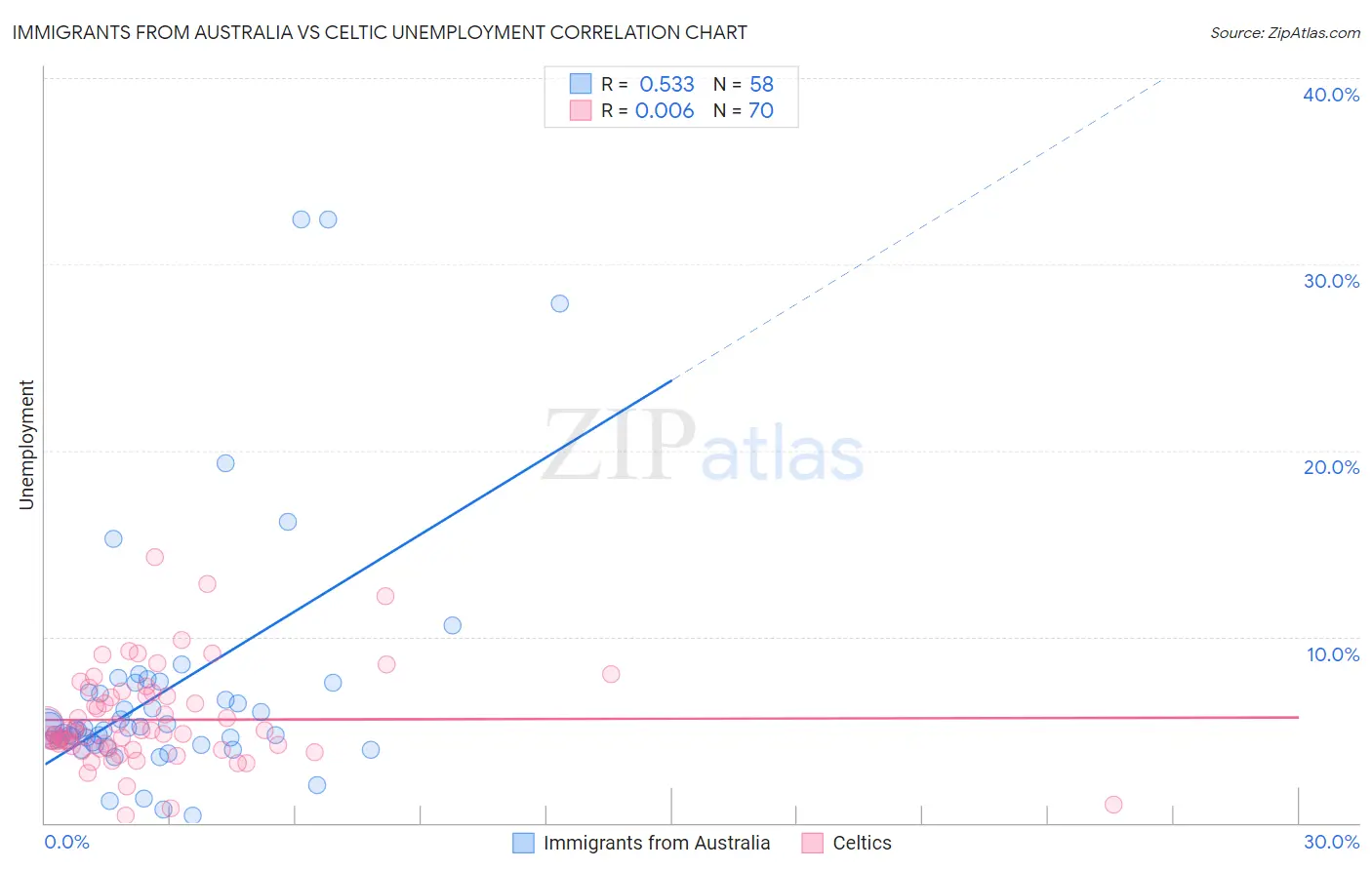 Immigrants from Australia vs Celtic Unemployment Correlation Chart