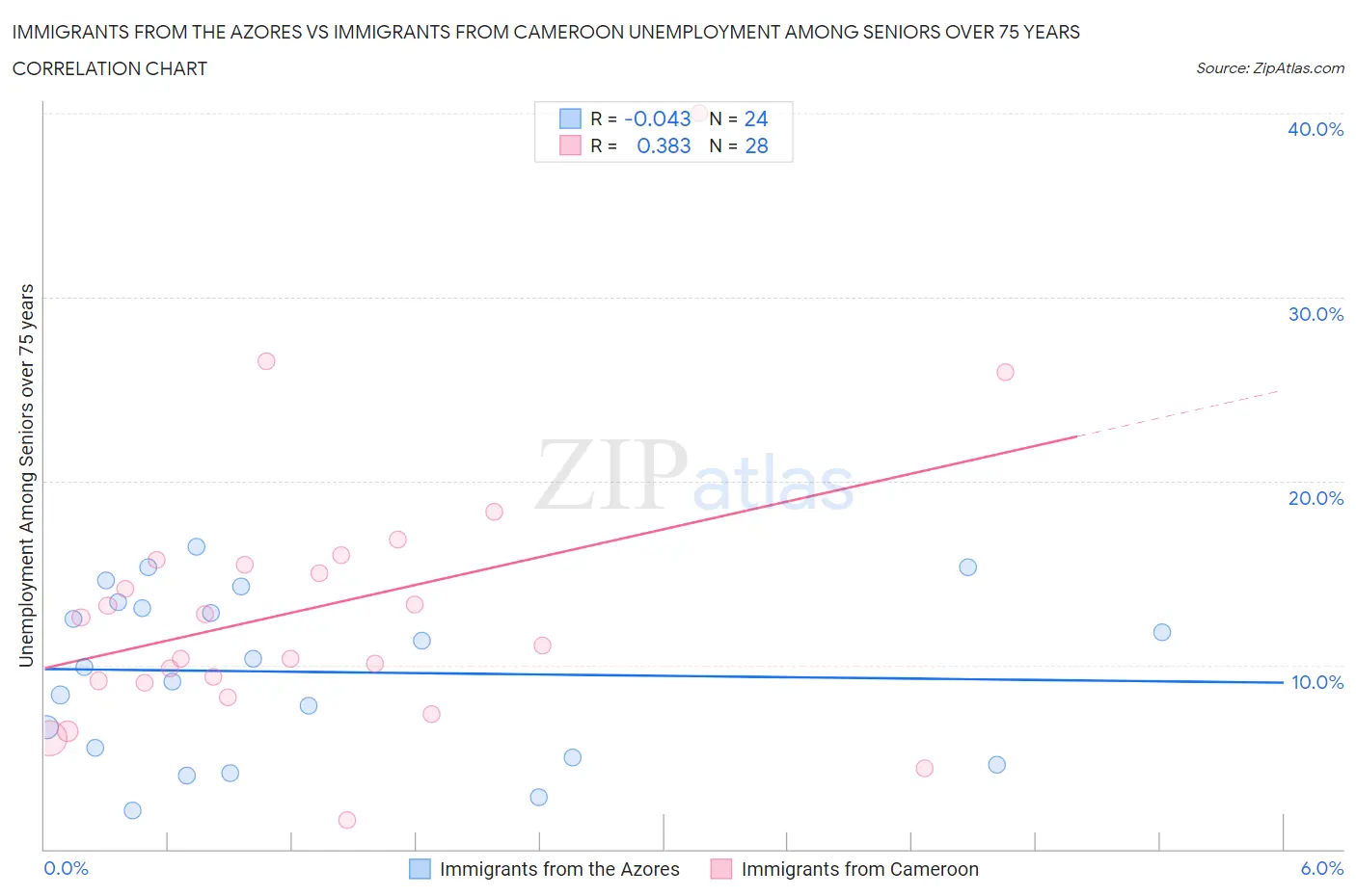 Immigrants from the Azores vs Immigrants from Cameroon Unemployment Among Seniors over 75 years Correlation Chart