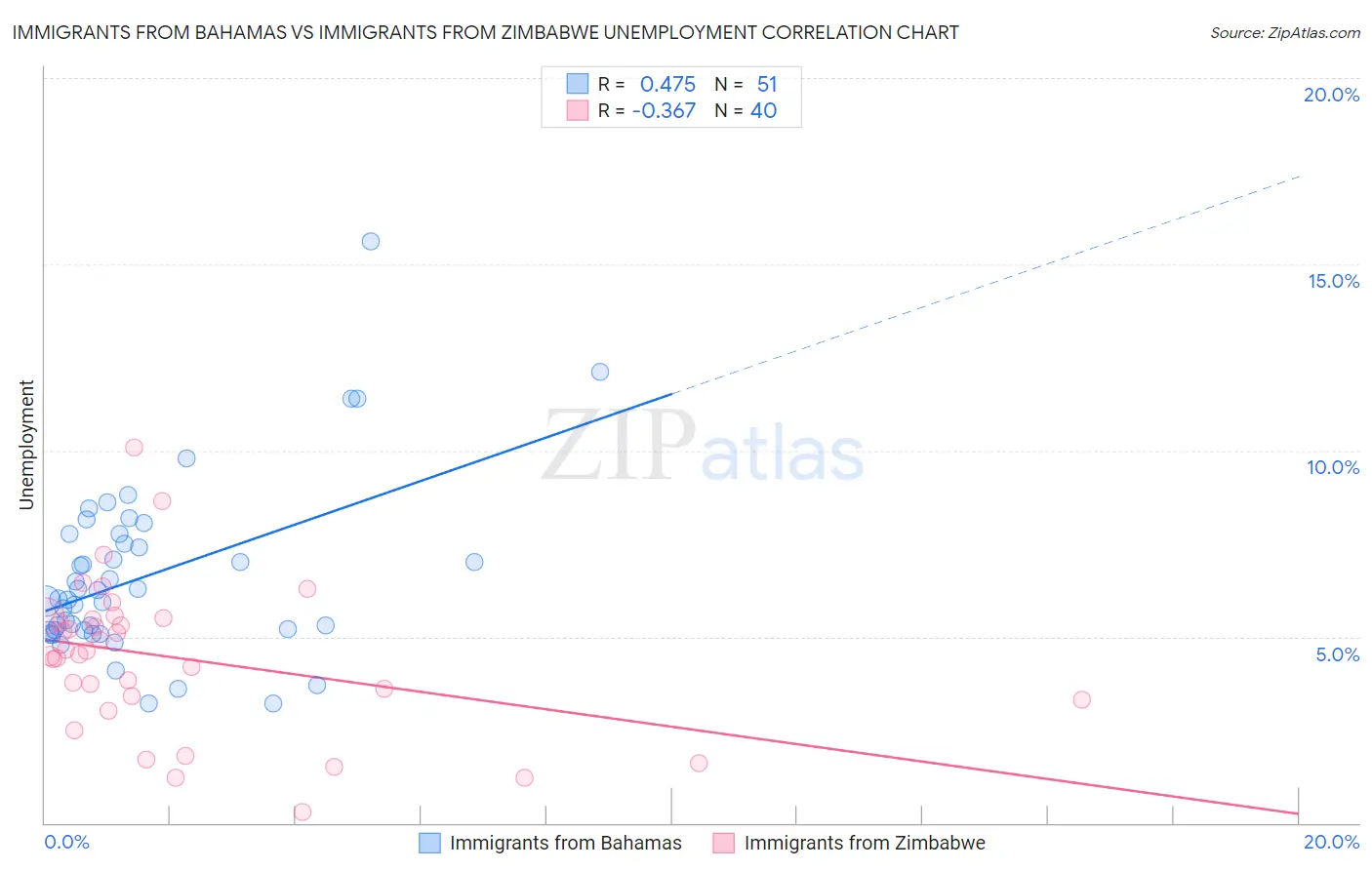 Immigrants from Bahamas vs Immigrants from Zimbabwe Unemployment Correlation Chart
