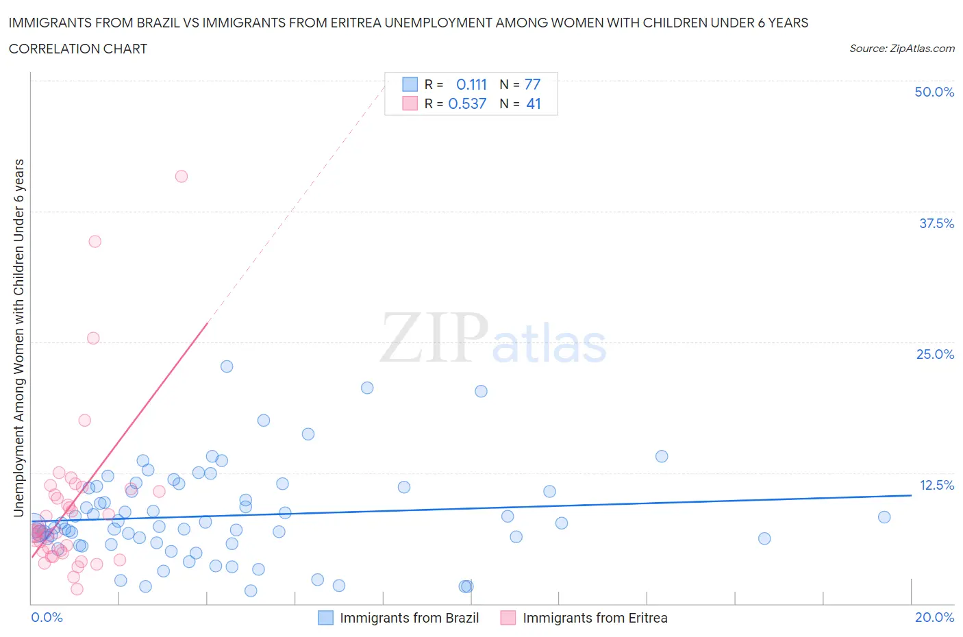 Immigrants from Brazil vs Immigrants from Eritrea Unemployment Among Women with Children Under 6 years Correlation Chart