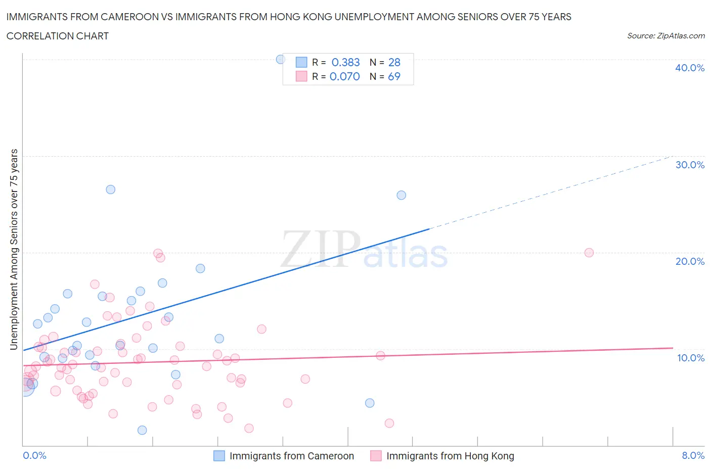 Immigrants from Cameroon vs Immigrants from Hong Kong Unemployment Among Seniors over 75 years Correlation Chart
