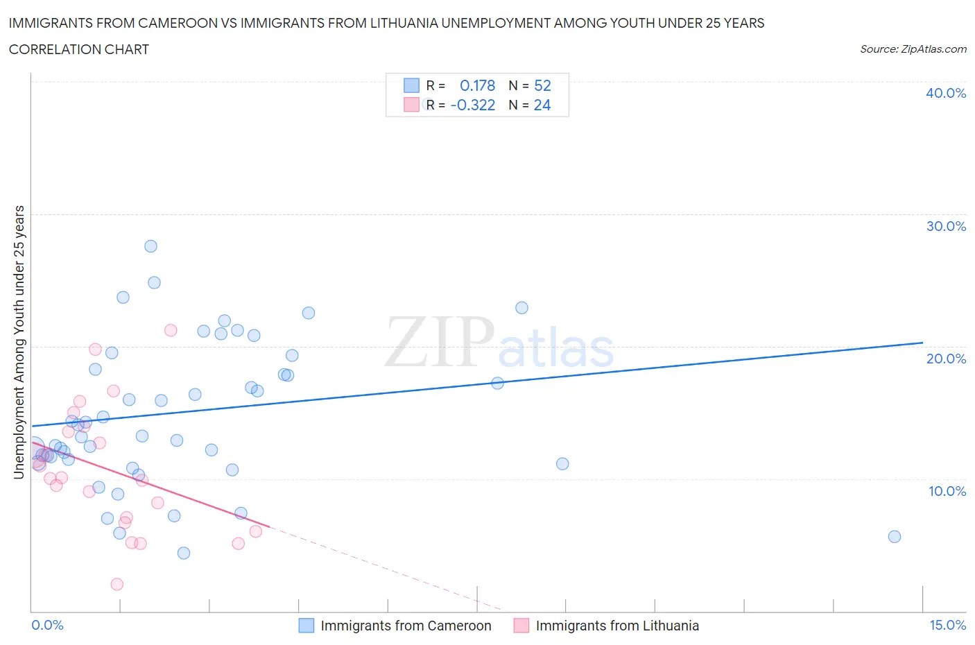 Immigrants from Cameroon vs Immigrants from Lithuania Unemployment Among Youth under 25 years Correlation Chart
