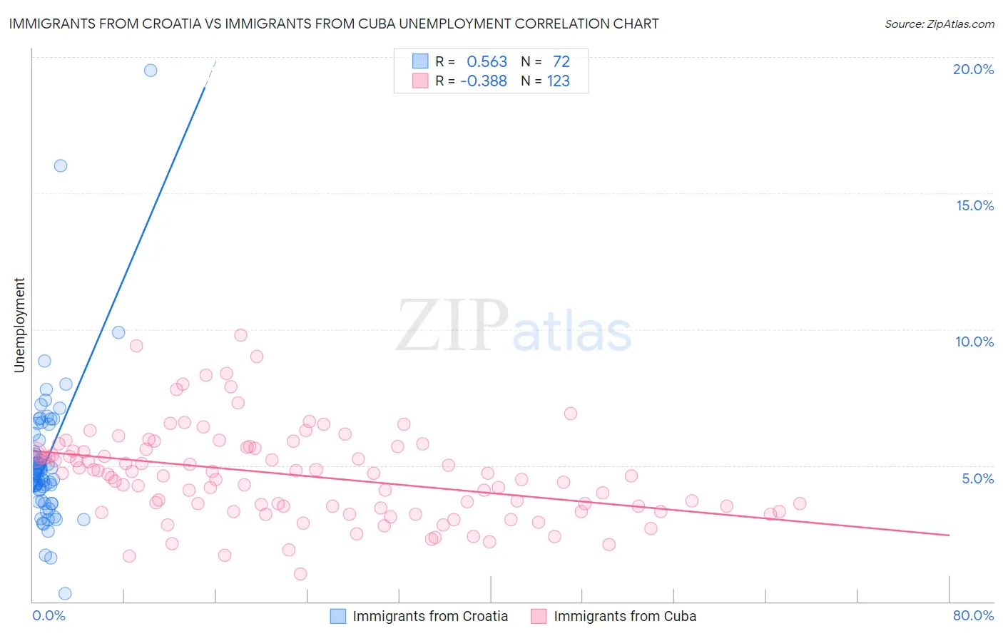 Immigrants from Croatia vs Immigrants from Cuba Unemployment Correlation Chart