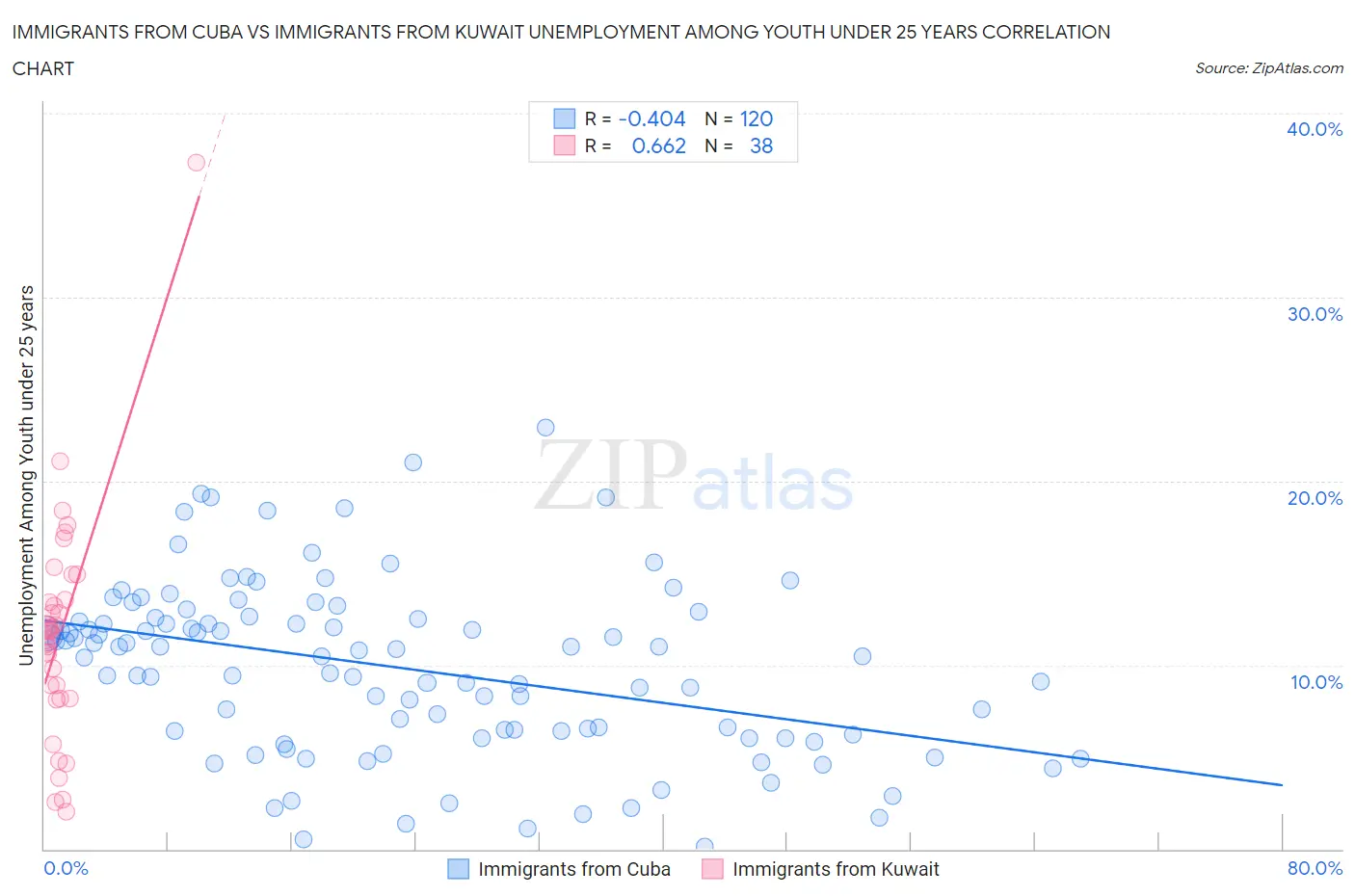 Immigrants from Cuba vs Immigrants from Kuwait Unemployment Among Youth under 25 years Correlation Chart