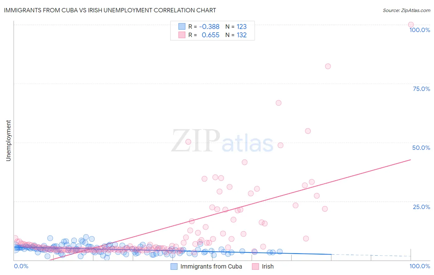 Immigrants from Cuba vs Irish Unemployment Correlation Chart