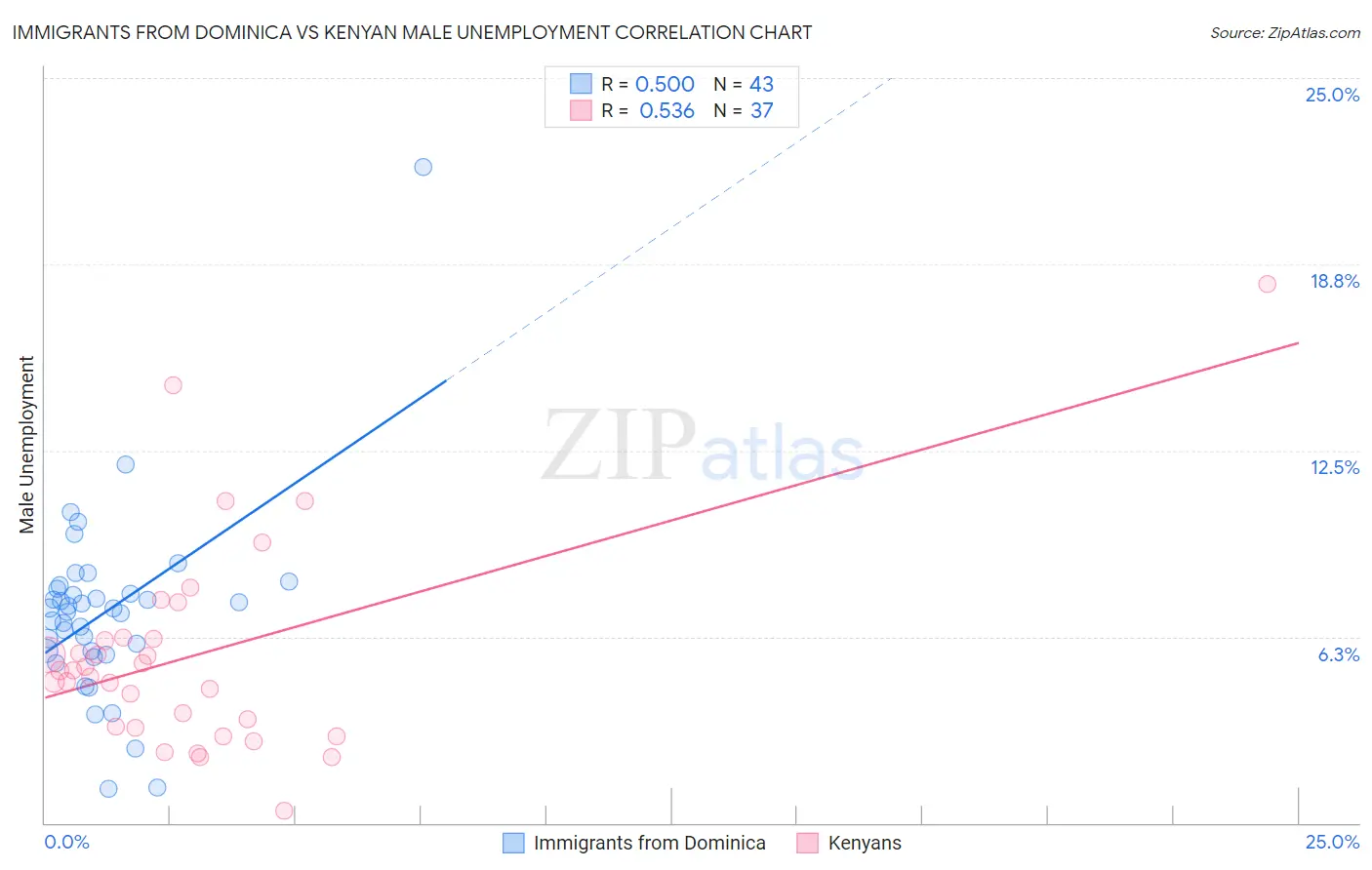 Immigrants from Dominica vs Kenyan Male Unemployment Correlation Chart