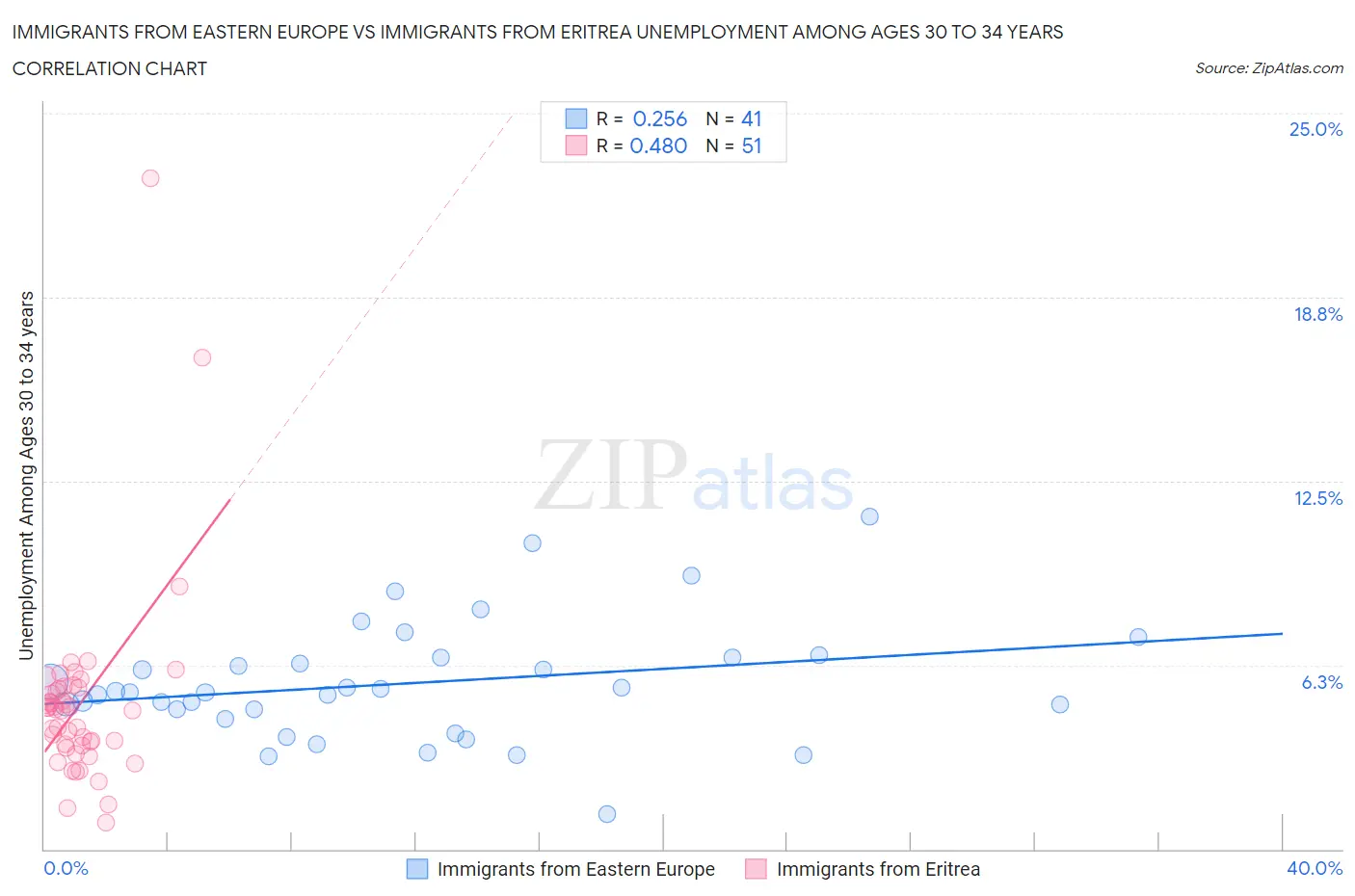 Immigrants from Eastern Europe vs Immigrants from Eritrea Unemployment Among Ages 30 to 34 years Correlation Chart
