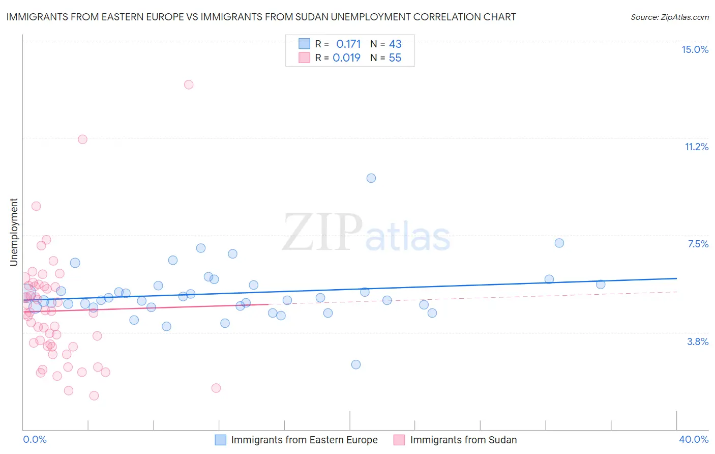 Immigrants from Eastern Europe vs Immigrants from Sudan Unemployment Correlation Chart