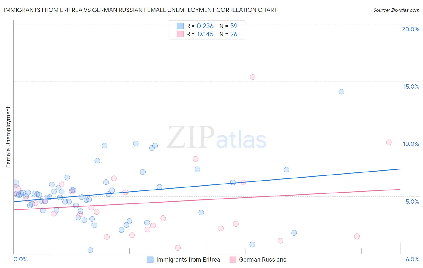 Immigrants from Eritrea vs German Russian Female Unemployment Correlation Chart