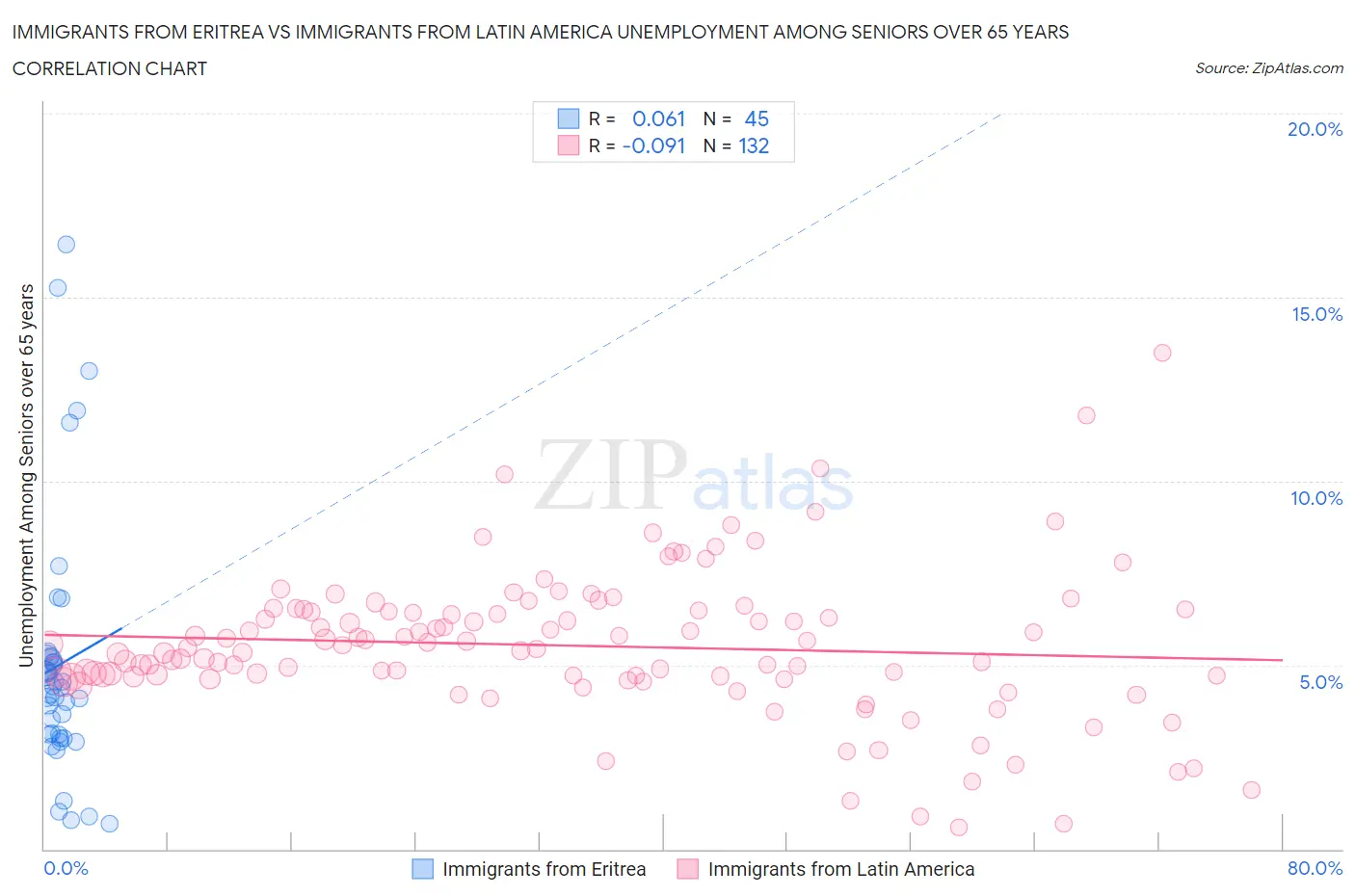 Immigrants from Eritrea vs Immigrants from Latin America Unemployment Among Seniors over 65 years Correlation Chart