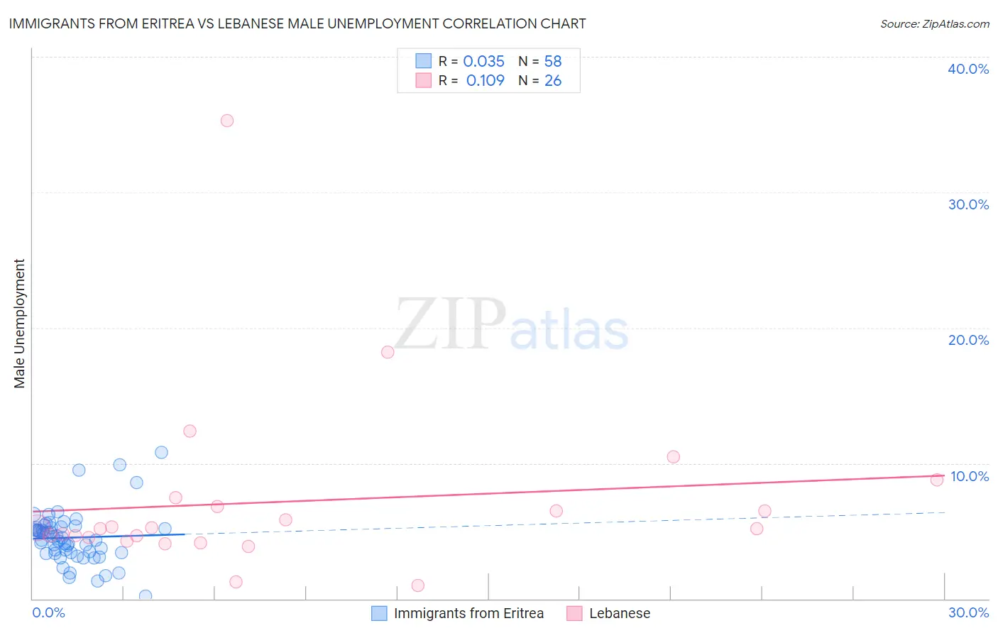 Immigrants from Eritrea vs Lebanese Male Unemployment Correlation Chart