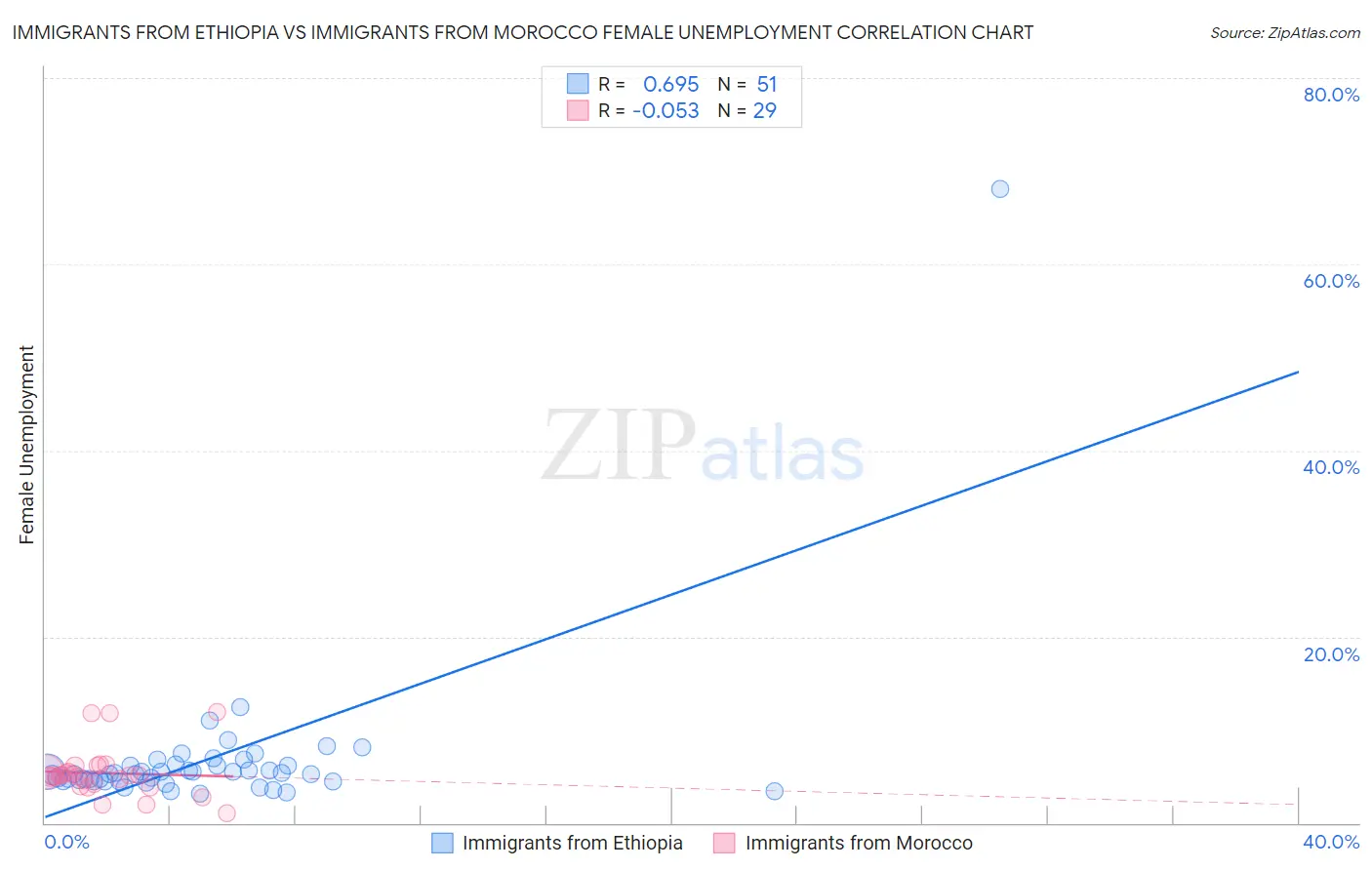 Immigrants from Ethiopia vs Immigrants from Morocco Female Unemployment Correlation Chart