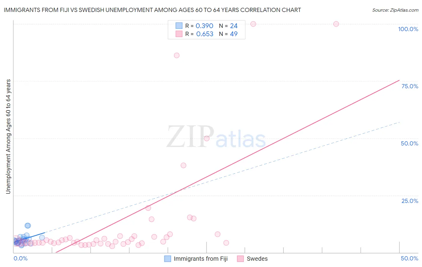 Immigrants from Fiji vs Swedish Unemployment Among Ages 60 to 64 years