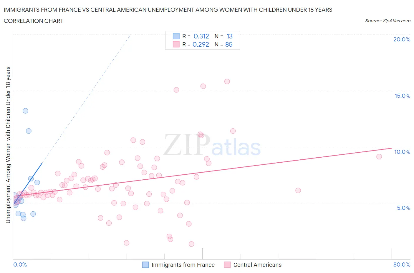 Immigrants from France vs Central American Unemployment Among Women with Children Under 18 years Correlation Chart