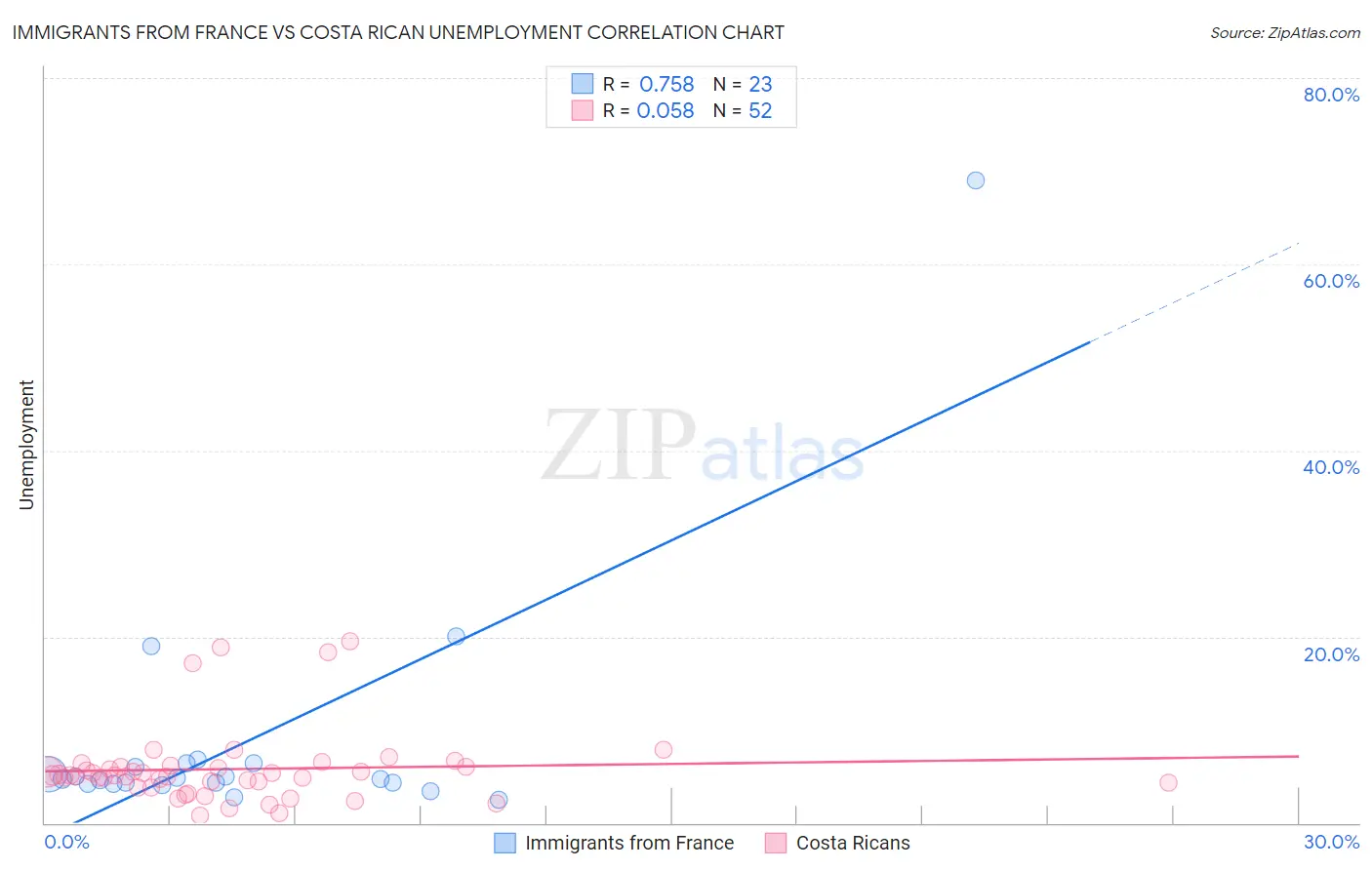 Immigrants from France vs Costa Rican Unemployment Correlation Chart