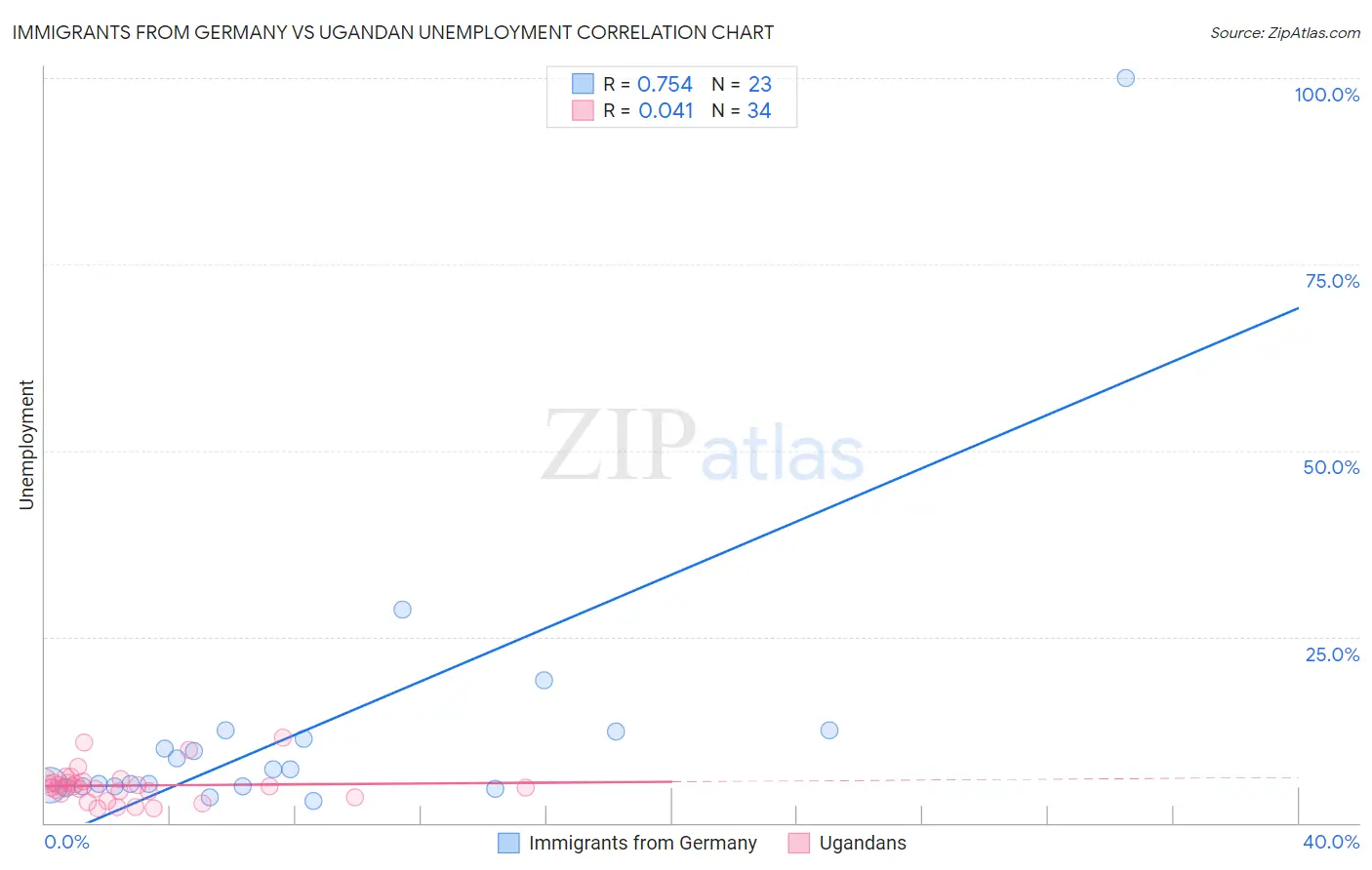 Immigrants from Germany vs Ugandan Unemployment Correlation Chart