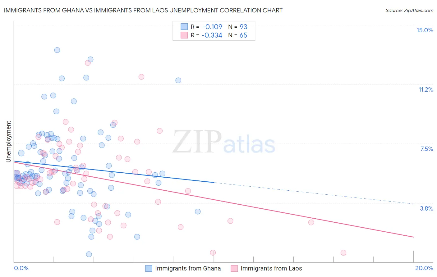 Immigrants from Ghana vs Immigrants from Laos Unemployment Correlation Chart