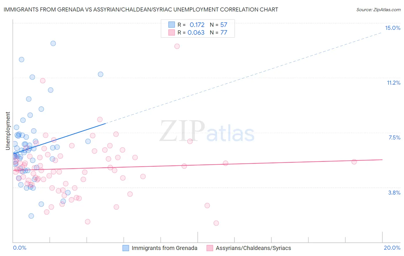 Immigrants from Grenada vs Assyrian/Chaldean/Syriac Unemployment Correlation Chart