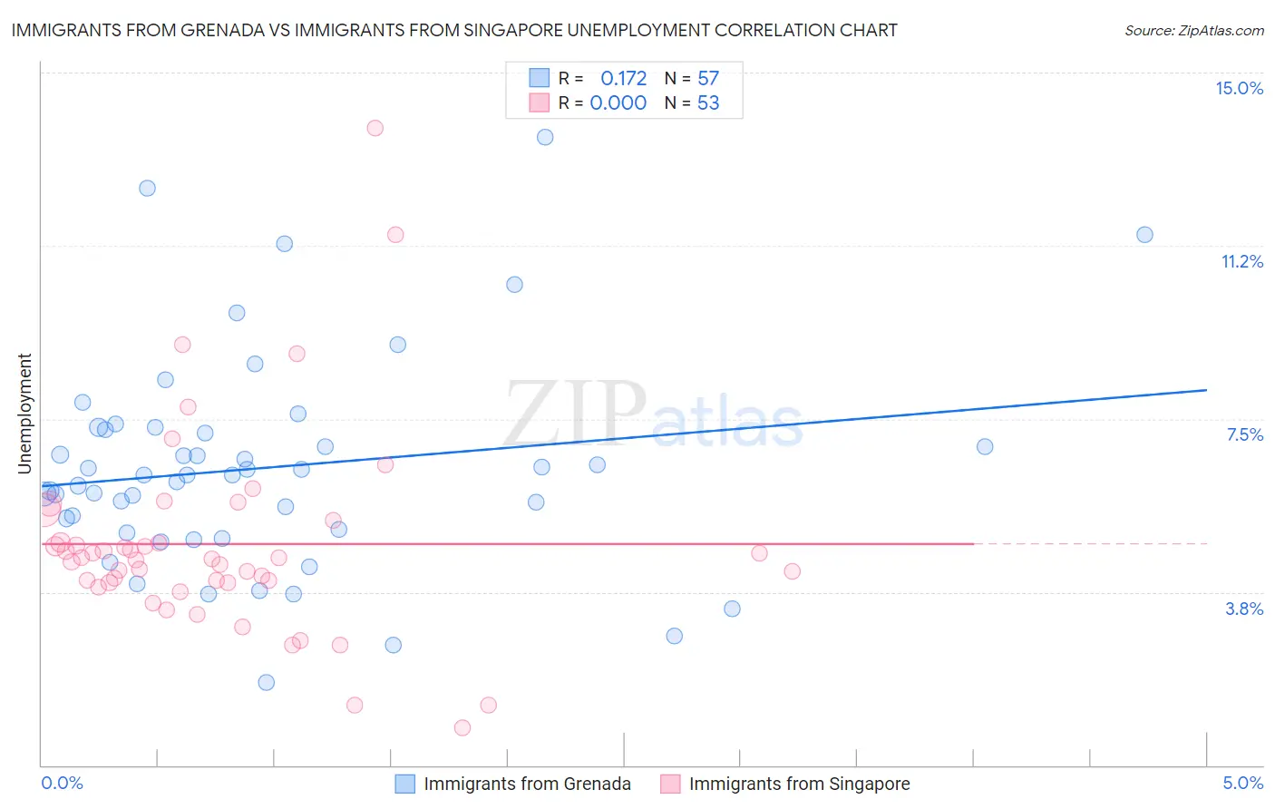 Immigrants from Grenada vs Immigrants from Singapore Unemployment Correlation Chart