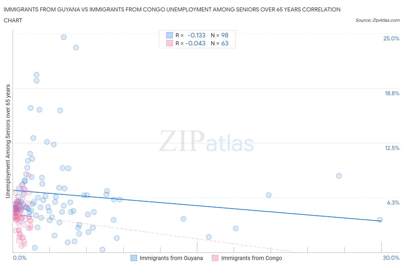 Immigrants from Guyana vs Immigrants from Congo Unemployment Among Seniors over 65 years Correlation Chart
